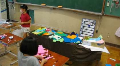 隣のクラスでは,ストローを使って,動きのある作品作りに挑戦しています。