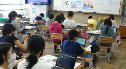 5年生は,作品作りのあと,振り返りをロイロノート・スクールを使って提出しています。