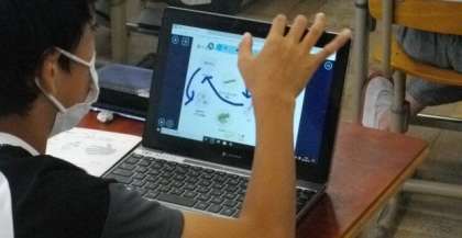 6年生は,生物同士の関係をロイロノート・スクールを使ってまとめています。写真や図を線で結んだり,コメントを加えたりして自分なりに表現方法を工夫しています。