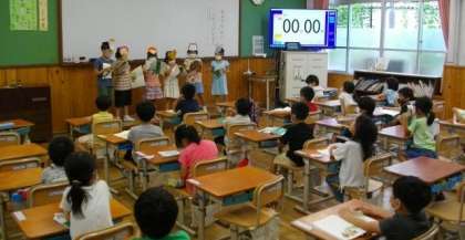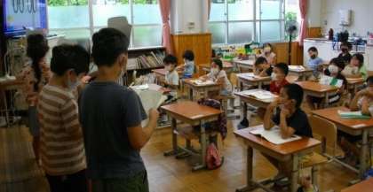 1年生は,「おおきな かぶ」の音読発表をしていました。