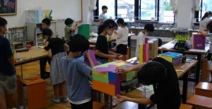 4年生の図画工作科の学習の様子です。思いを形にして表現するために,大きさや形,色を工夫しています。