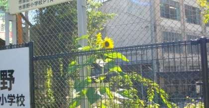 校門横のひまわりの花が咲きました。