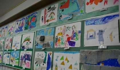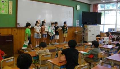 1年生は,国語科で「おおきな かぶ」の音読をしています。