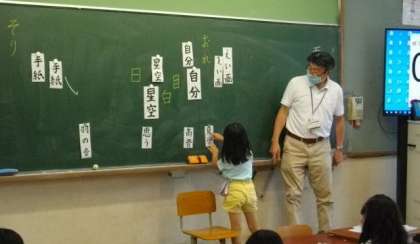 文字のこまかいところまで見比べ,まちがいさがしなどをしながら,正しい文字の書き方を学習しています。
