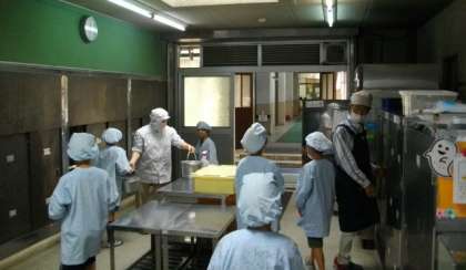 給食の準備が始まりました。
