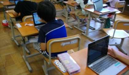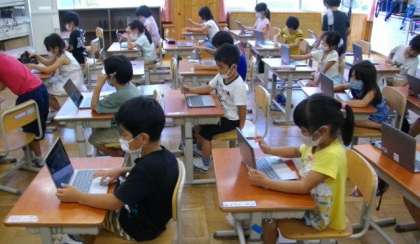 1年生はタブレットを使ってデジタルドリルに取り組んでいます。