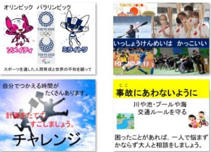 1学期の終業式では「夏休みは自分で使える時間がたくさんありますので,ぜひいろいろなことにチャレンジしてください。そして何より,事故にあわないように「にこにこ」と過ごせるように気をつけてください。困ったことがあれば,一人で悩まずに必ず大人と相談をしましょう。2学期の始業式は8月25日に行います。元気にいっぱいのみなさんと会えることを楽しみにしています。」といった内容のお話をしています。