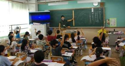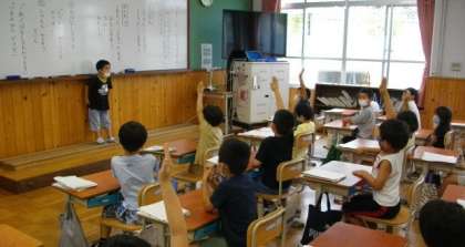 1年生は,どんなできごとだったのかな,くわしくお話をしよう,ということで,一人ずつ発表をしています。聞く姿勢も立派です。