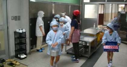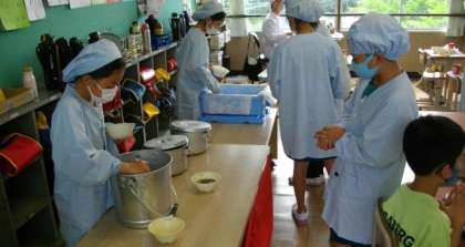 給食の準備がはじまりました。
