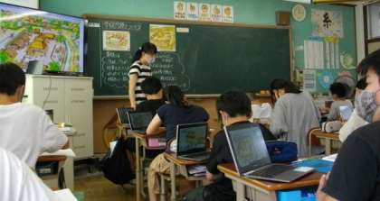 6年生は,社会科でデジタル教科書の挿絵を使いながら学習問題作りに取り組んでいます。