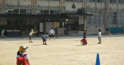 運動場で,遊んでいるお友達もいます。