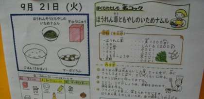 ほうれん草ともやしの炒めナムル 牛乳