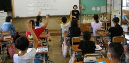 2年生は,1時間目から花笠音頭の練習が始まりました。