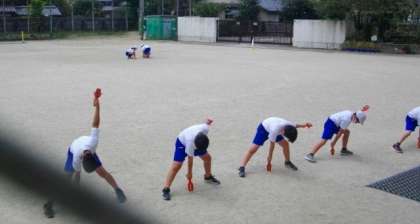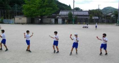 4年生が演舞の練習を運動場で行いました。
