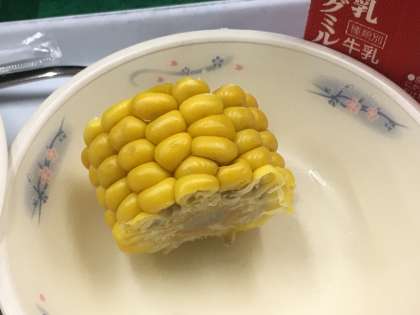 ついにスチームコンベクションオーブン(略してスチコン)を使った献立が提供されるようになりました。記念すべき初献立は【カットコーン】でした。スチコンを使って蒸しあげたコーン(スチコンで蒸しあげたコーンなので,“スチコーン”!?という名前もかわいらしいかもしれませんね…)は,一粒一粒がはじけそうなくらいぷっくらしており,甘みが引き立っていました。
