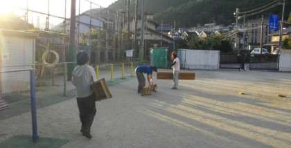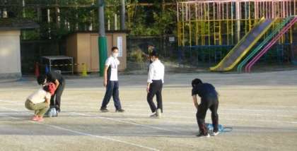 明日の運動会に向けて,教職員でグラウンド整備を始めました。