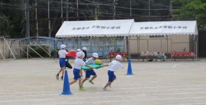 1年団体競技「力を合わせてはこべ!はこべ!」の様子です。