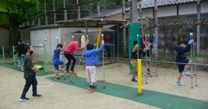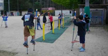 今日から,新しい竹馬を用意しました。