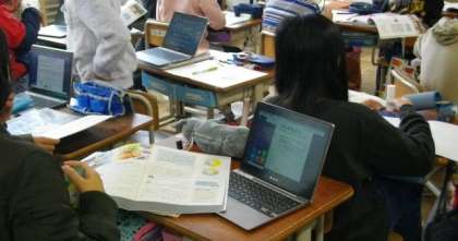 5年生は,社会科で,漁業について学習したことをタブレットを使ってまとめています。