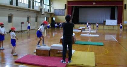 2年生は,体育の跳び箱運動でいろいろなわざに挑戦しています。