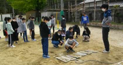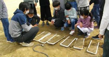 5年生は,理科で,流れる水のはたらきを調べるための実験をしています。