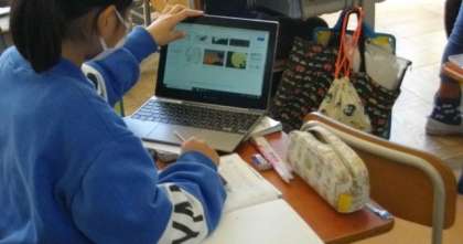 4年生の理科で,月と太陽の動きを観察を通して学習しました。今度は,調べたことやわかったことをタブレットを使ってまとめています。