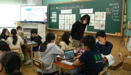 6年生の外国語科では,ALTの先生に「有名人クイズ」を出題するために,問題作りにとりくんでいます。