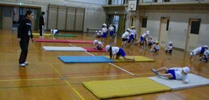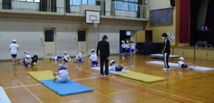 1年生は,マットを使った運動に取り組んでいます。