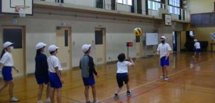 4年生は,静原小学校のお友達といっしょに,ソフトバレーボールに取り組みました。