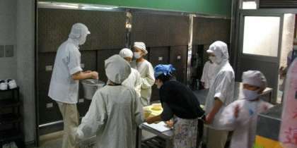 給食の用意が始まりました。