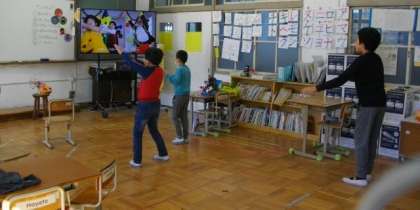 2年生は,図画工作科で,はさみで自由に切った紙を貼り合わせて作品を作っています。