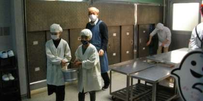 給食の準備が始まりました。