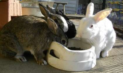今日も,きれいなウサギ小屋の中で,なかよしウサギは,もりもり食べています。