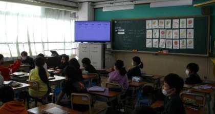 4年生は,外国語活動でつくったオリジナルピザの人気投票をしています。