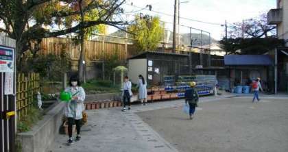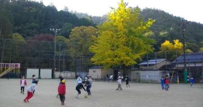 運動場ではたくさんの子どもたちが遊んでいます。