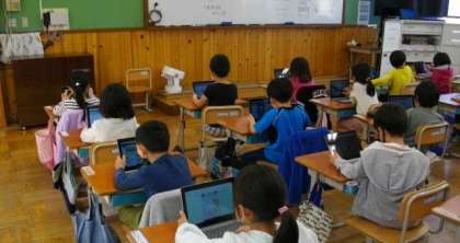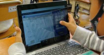 1年生は,デジタルドリルで算数の復習問題に取り組んでいます。ログインにもなれ,デジタルドリルで進んで学習をしています。