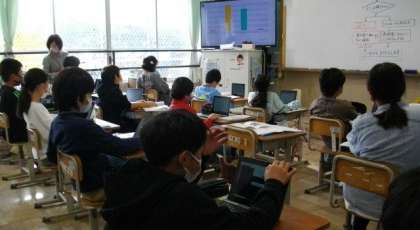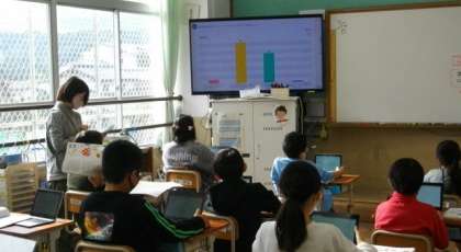 5年生は,ロイロノート・スクールのアンケート機能を使って,家庭科のミニテストに取り組んでいました。