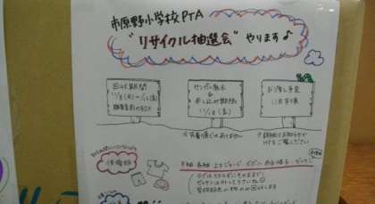 市原野小学校PTA「リサイクル抽選会」の案内をしていただいていました。少しずつ集まっているようです。