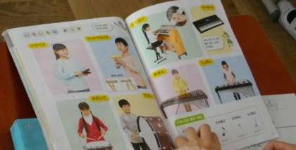 2年生は,リズム音楽を聴き,どんな楽器が使われているのか,見つけています。