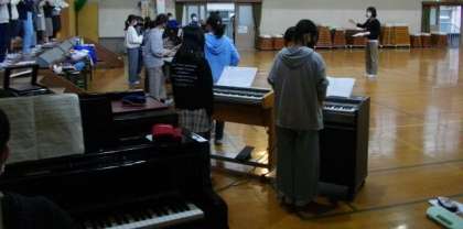 6年生が,フェスタに向けて体育館で練習を始めました。