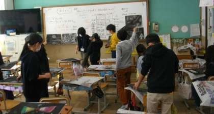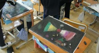 5年生は図画工作で「消してかく」に取り組んでいます。