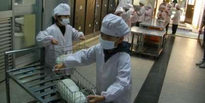 給食の準備が始まりました。