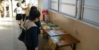 2年生の教室前には,おすすめの本を並べています。
