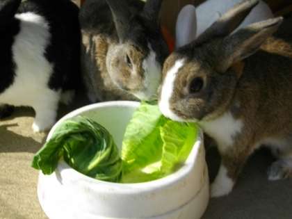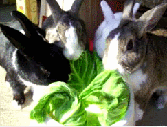 キャベツをとてもおいしそうに食べているなかよしうさぎです。
