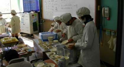 給食の準備が始まりました。