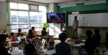 4年生は,私たちが住んでいる京都市のことをもっともっと知るために学習を進めています。今日は,祇園祭の山鉾の一つである南観音山について,ビデオを見ながら学習しました。(ビデオは,お囃子の練習風景を紹介する内容で,先日本校の職員が現地に赴いて取材をしたものです。)