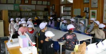 静原小学校の図書館や音楽室も”探検”させてもらいました。