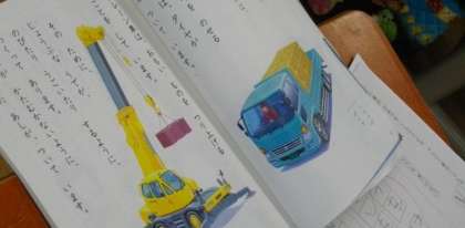 1年生は,国語で「じどうしゃくらべ」の学習をしています。