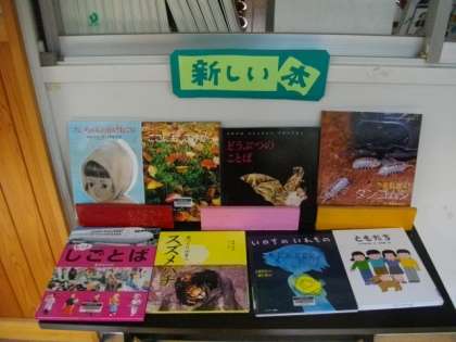 学校図書館の前には,定期的に新しい本を紹介しています。