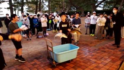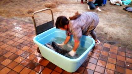 魚つかみ体験をしました。